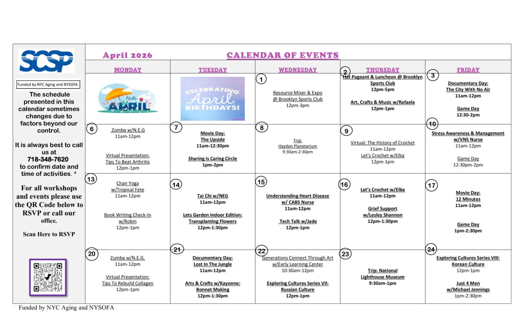 SCSP Calendar For April 2026